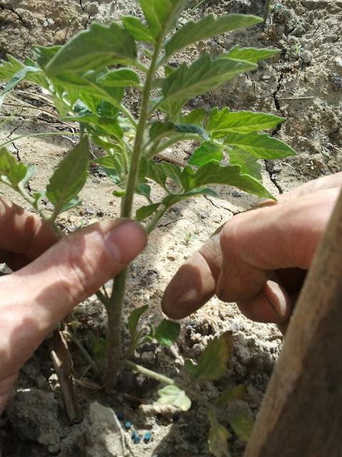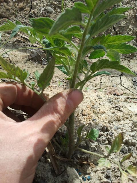 Esto dicen que se debe hacer el primer palmo de altura de las tomateras, mejor cuanto más pequeñas, para que no chupen vigor a la planta general.