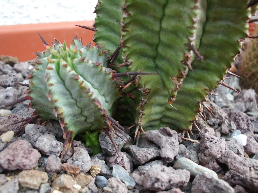 Este es el único injerto que tengo ya que no me gustan mucho, no obstante este gymnocalycium morado ha florecido y me ha convencido un poco más jaja...