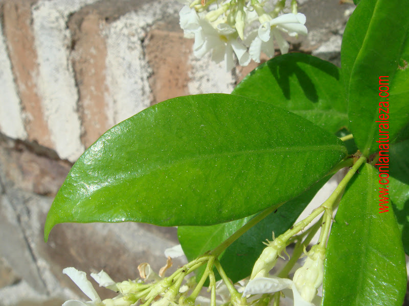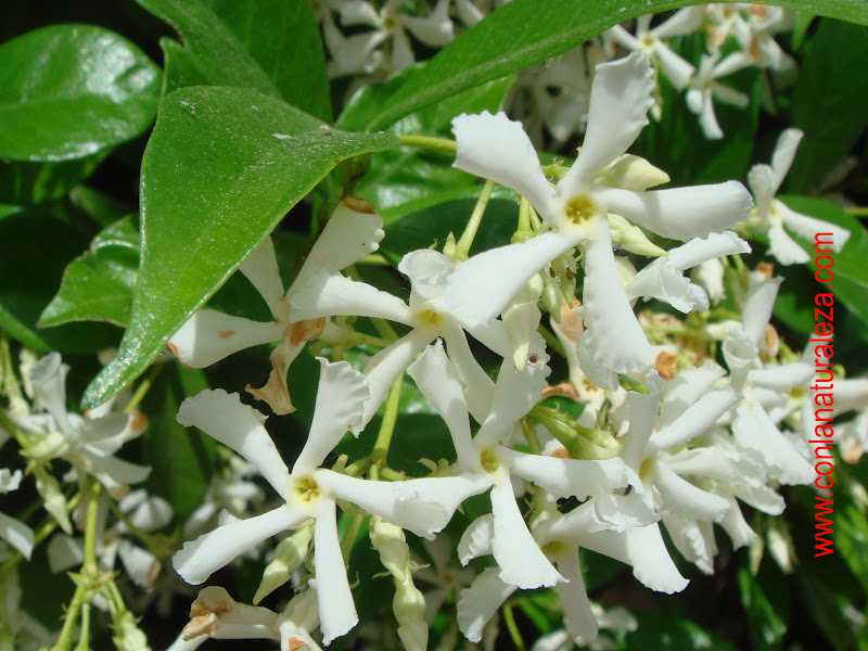 Flores blancas en forma de estrella que recuerdan a las del jazmín