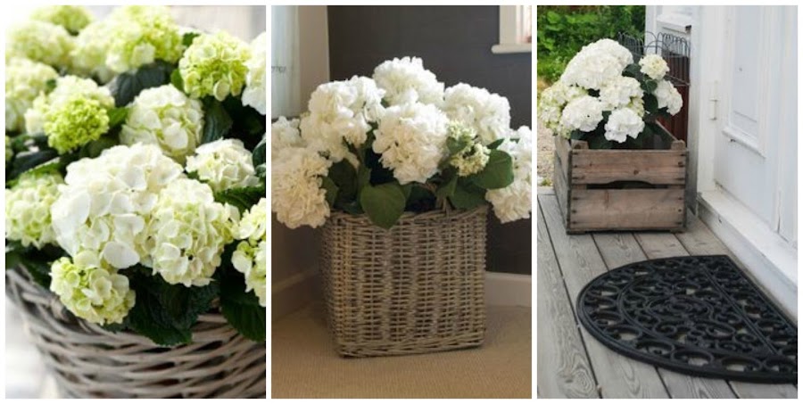 Debo admitir mi debilidad por las hortensias de color blanco, y ya si vienen en cestita ni os cuento.