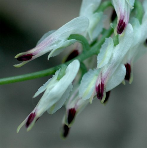 Aquí podemos apreciar la belleza de las pequeñas flores de la fumaria officinalis.