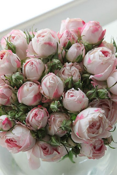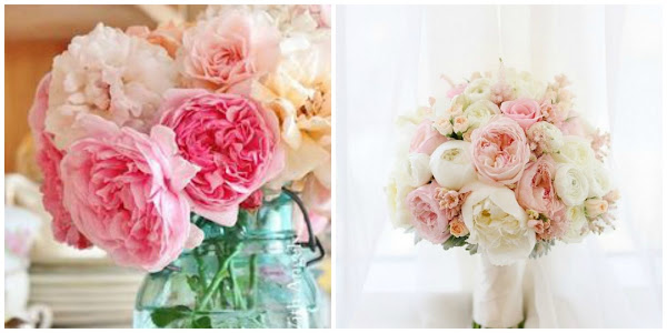 Para julio hemos elegido una flor que tiene un parecido a una flor de la que ya te hemos hablado por aquí. Se trata de las rosas inglesas, que tienen más que un aire a nuestra flor de mayo que fue la peonía. Estas rosas son también conocidas como rosas Austin debiendo su nombre a su creador que da nombre a la rosa, David Austin. Si quieres saber más de ellas no tienes más que visitar el blog de Floritismo en la que explica el origen y las ventajas de esta clase híbrida. Es una buena opción si te gustan las peonías pero por temporada no llegas a ellas ya que las peonías suelen durar como mucho hasta julio (según tenemos entendido). Juzga por ti misma el parecido entre ellas. De las rosas ya volveremos a hablar en algún otro mes, que será por clases...