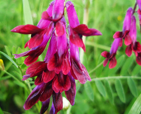 Diente de dragón (Tetragonolobus purpureus) Crece en terrenos calcáreos y arcillosos, márgenes de caminos y de cultivos y en praderas húmedas. Florece en primavera.