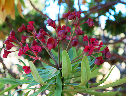 Tabaiba majorera (Euphorbia atropurpurea) Crece en lugares soleados y florece en invierno y primavera.