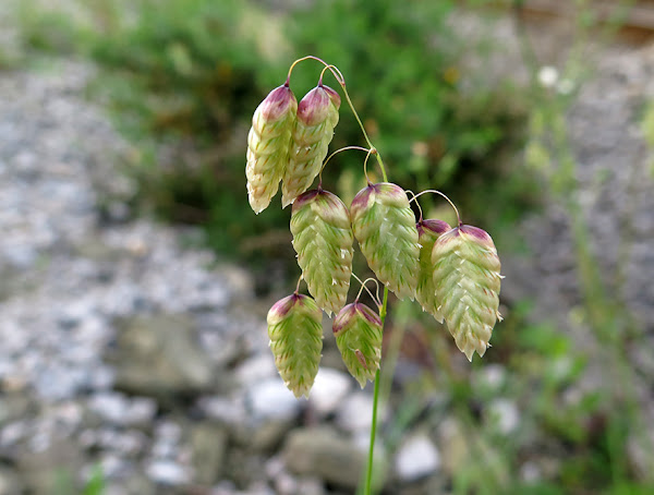 Bailarina (Briza maxima) Crece en terrenos baldíos, pastizales y bordes de caminos. Florece en primavera y verano.