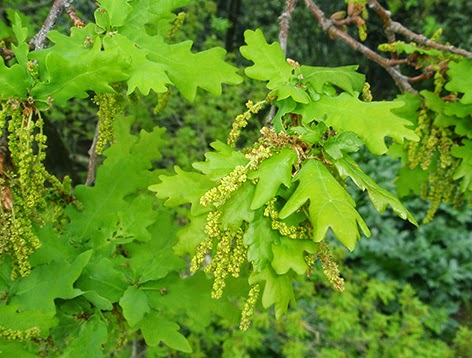 Roble, carballo o cagiga (Quercus robur) Crece en bosques mixtos y robledales. Florece en primavera.