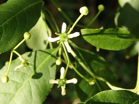 Bonetero (Euonymus europaeus) Crece en los bosques y en matorrales. Florece en primavera.