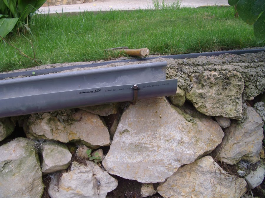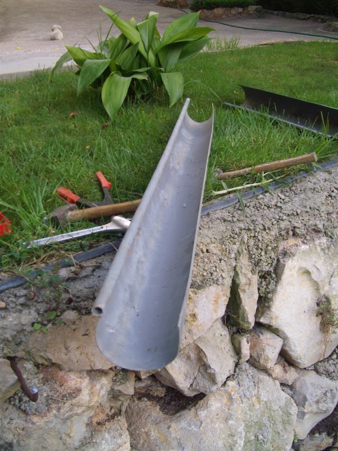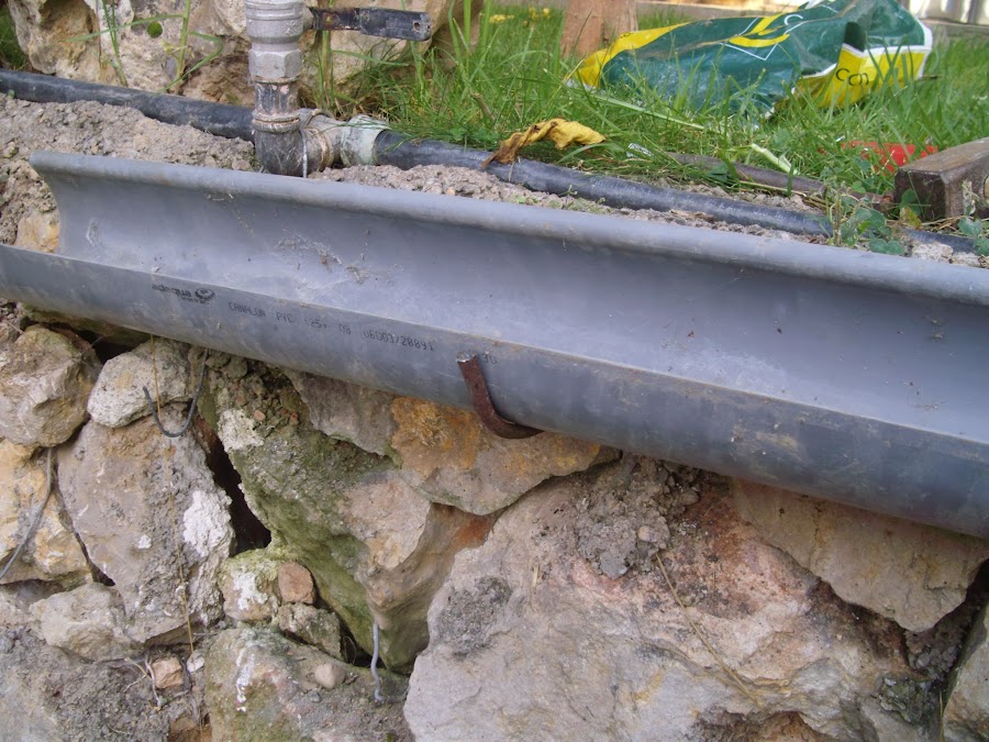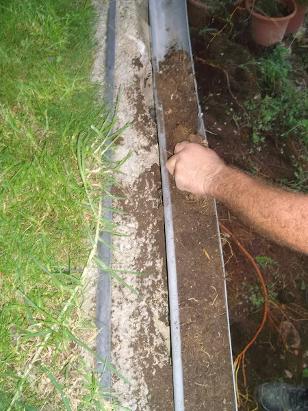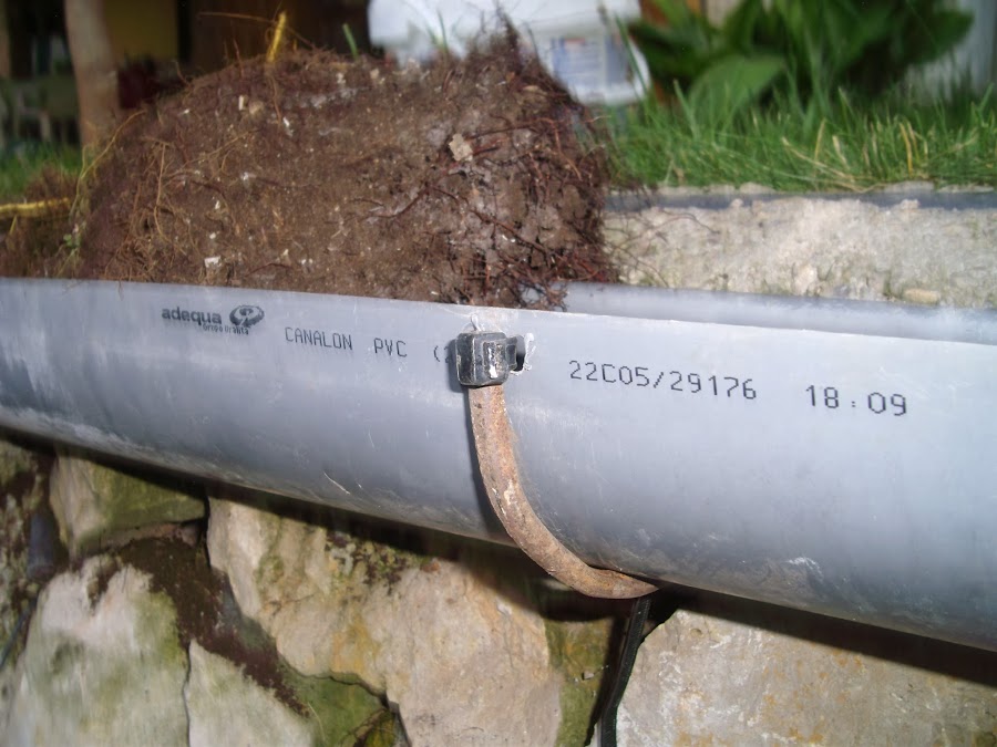 Entonces, un día encontré unos restos del canalón que se habían puesto en la casa, y pensé en usarlo para poner las plantas de fresas, ya que el canalón lo pondría sobre un muro y así colgarían las fresas y no estarían tocando el suelo.