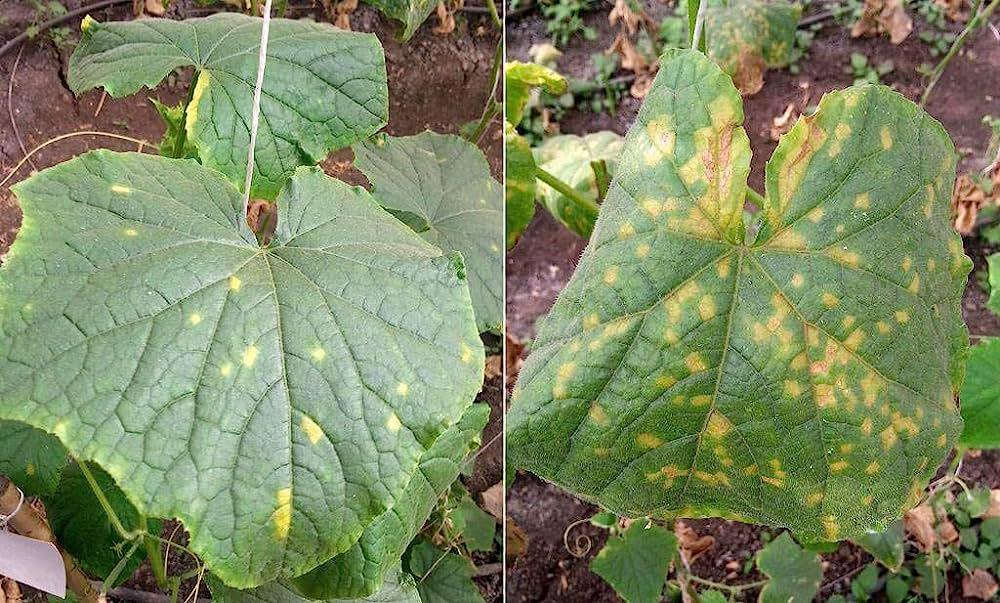 Los síntomas típicos del mildiu incluyen manchas de color amarillo, marrón o negro en las hojas, que pueden extenderse y volverse necróticas. También se pueden formar un moho blanco o gris en la superficie de las hojas y otros órganos de la planta. La enfermedad puede debilitar significativamente a las plantas afectadas, reducir su crecimiento y producción, e incluso causar la muerte en casos severos.