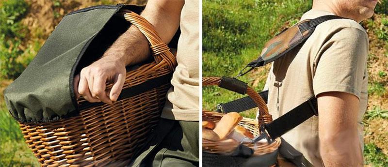 A pesar de que las cestas de mimbre tradicionales y también las de castaño se transportan sujetándolas del asa, hoy en día la oferta en tiendas especializadas en cestas es muy amplia. No todos quieren seguir utilizando este sistema y cada vez más encontramos modelos de cestas que se transportan a modo de mochila o de bandolera.La manejabilidad de una cesta con asa es innegable, pero también lo es la comodidad de poder desplazarnos por el monte con las manos libres. Y eso no lo podemos conseguir con una cesta a menos que le apliquemos una cinta de transporte especial.