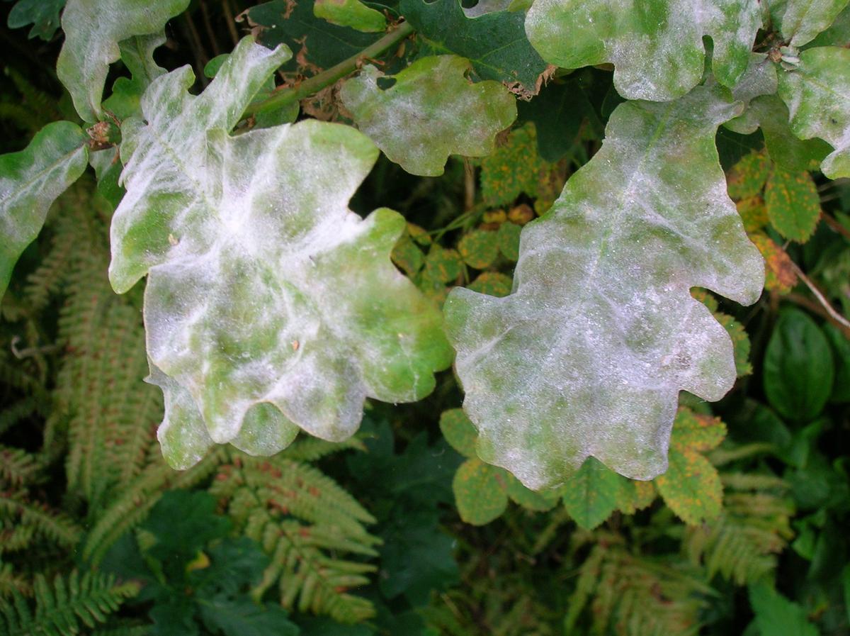 El Oidio forma una capa blanca en la superficie de las hojas durante el tiempo seco y nublado con alta humedad. Es causado por varios hongos. Las plantas que crecen en áreas sombreadas a menudo son las más afectadas.