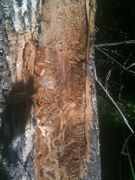 Un árbol infectado por barrenadores tiene una copa delgada o moribunda y un crecimiento errático a lo largo del tronco del árbol. Generalmente identificarás los arboles infectados porque son un sitio popular para los pájaros carpinteros ya que estas aves se alimentan de los escarabajos en la corteza. Finalmente, tras una inspección minuciosa del tronco, es posible que veas orificios en forma de “D”. Aquí es donde el escarabajo salió del árbol.