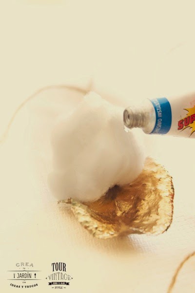 Para las bolitas de algodón, cogeremos un poco del mismo y le daremos la forma de bola y las pegaremos en el extremo de la hoja.