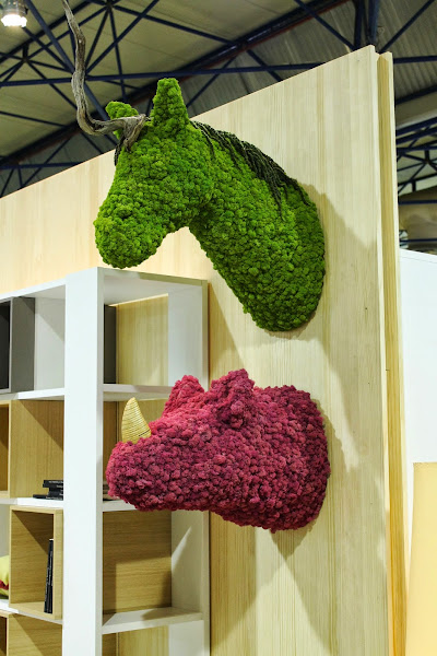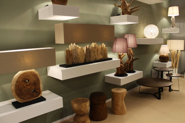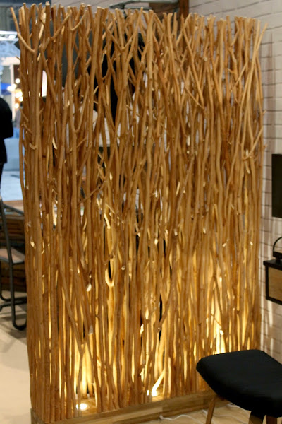 En mi paseo por la feria, lo que más vi fue la presencia de la madera en su estado más natural tanto para decoración de paredes, iluminación o mobiliario.