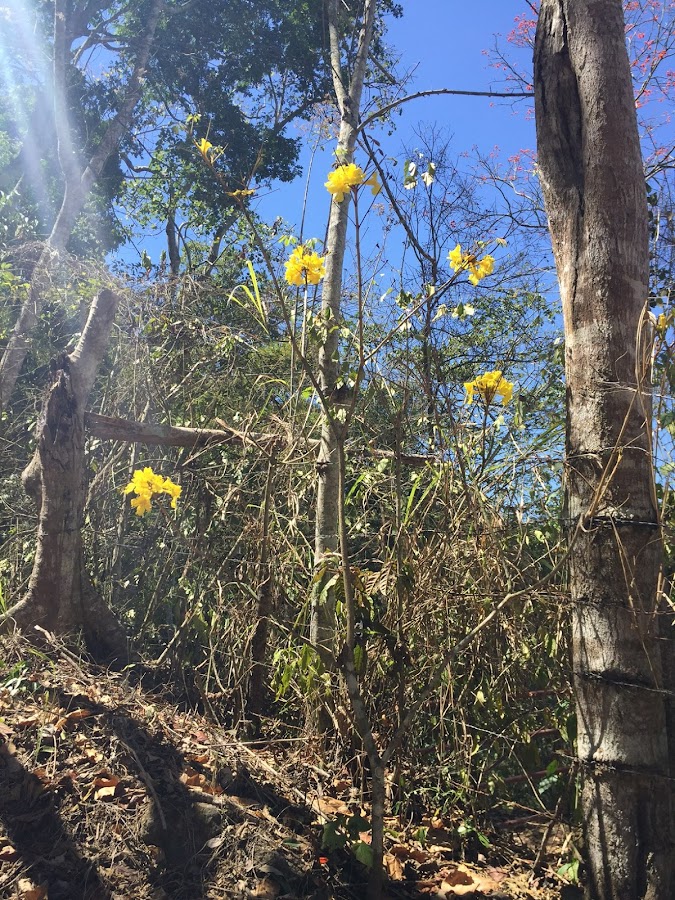 Es un árbol de crecimiento lento. Este pequeño araguaney tiene ocho años. Aquí lo vemos en el mes de marzo.
