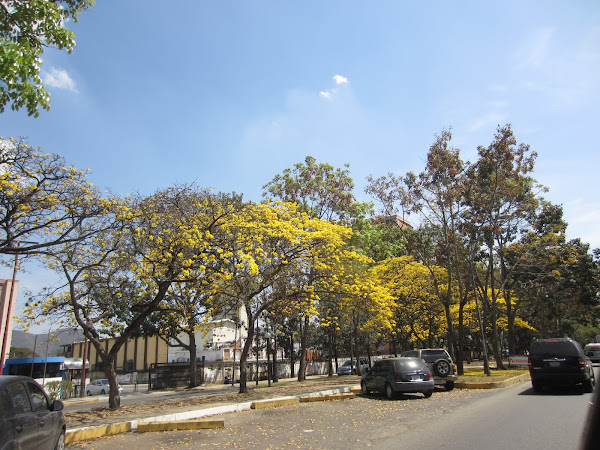 El araguaney o Handroanthus chrysanthus, anteriormente Tabebuia chrysantha, es el árbol nacional de Venezuela desde el 29 de mayo de 1948. Crece en casi todo el territorio nacional. Es bastante abundante en los llanos. Estas vistas corresponden a una conocida avenida de Valencia, Venezuela, en el mes de febrero. Es un árbol que se presta para ser utilizado en parques y avenidas. Es de raíces profundas, por lo que no hace daño en las calles ni en las aceras.
