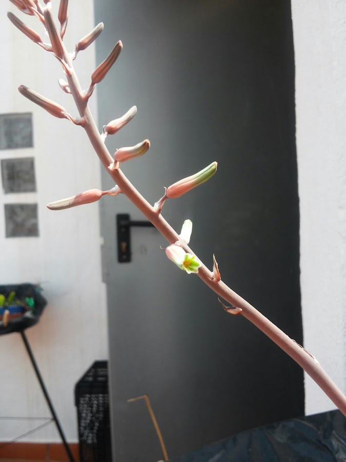 Estas son dos de las plantas más resistentes que tengo: mi xGasteraloe y mi haworthia limifolia. Me ha costado mucho enfocar bien la flor, pero lo he conseguido!