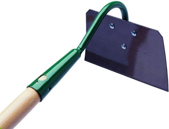 Azada o binador: Es una herramienta muy popular porque es multiusos ya que no sólo la utilizamos para arrancar malezas sino para casi todo. Es ideal para hierbas jóvenes con poca raíz y cuenta con la posibilidad de acoplar esta pieza a un mango corto o largo según nuestra comodidad.