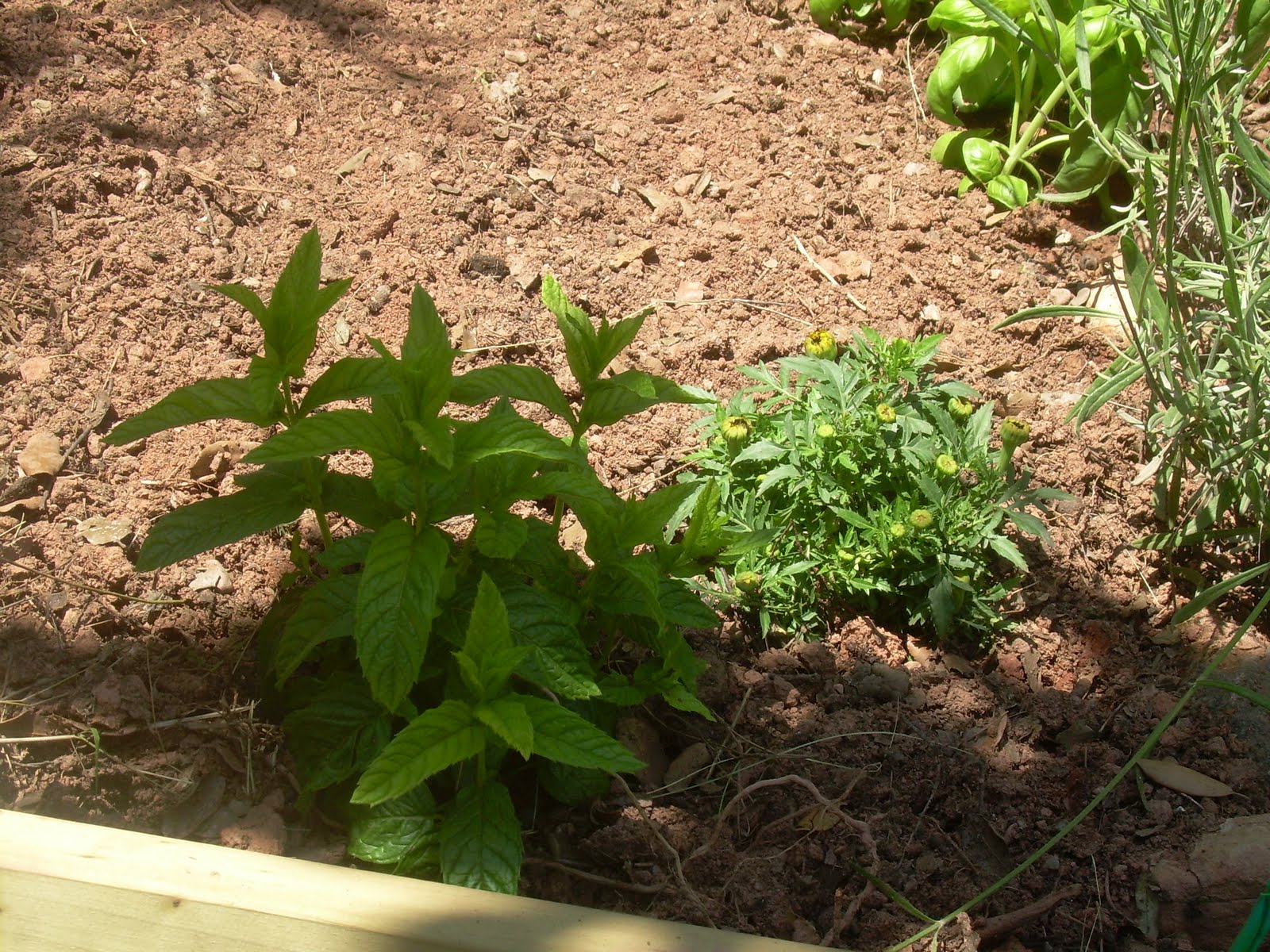 Aquí veis una de las mentas y el clavel de moro, que Idris dice que esa planta es buena porque evita algunos insectos.