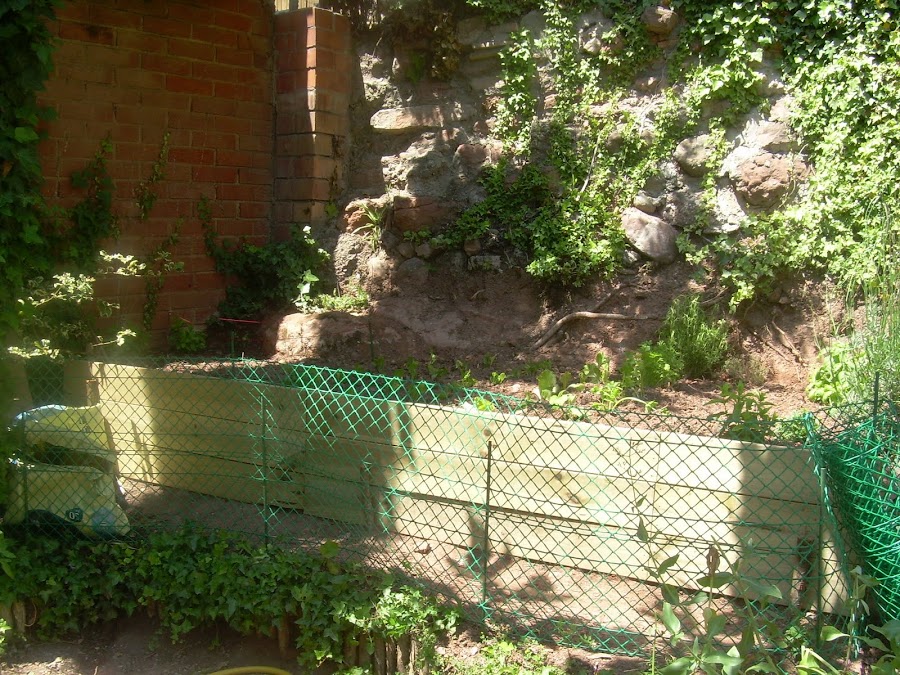 Aquí teneis la pequeña jardinera que hemos hecho. Mi marido, muy manitas él, arregló un trocito de tierra, compró materiales y la hizo. ¡A mi me encanta! Incluso tenemos la protección contra Ahmed Nuris...