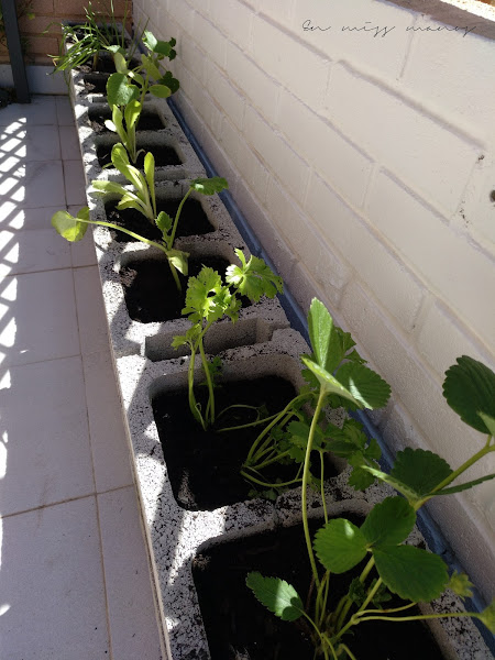 Hice la mitad del huerto con semillas (albahaca, cebollino, rábano, perejil...) y la otra mitad comprando en vivero mini plantas de diferente tipo (fresa, lechuga, pepino...).