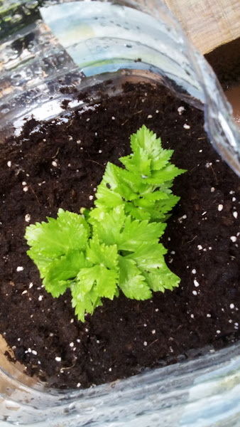 Mirad hoy día 10 como esta nuestro apio como va creciendo menuda sensación es pensar que son trozos que tiramos y que tienen vida solo con unos pequeños cuidados.