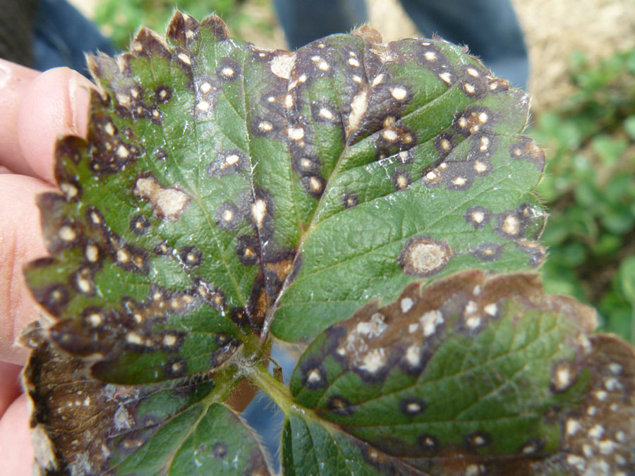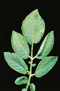 En hojas jóvenes se aprecian manchas cloróticas (amarillas) poco específicas.