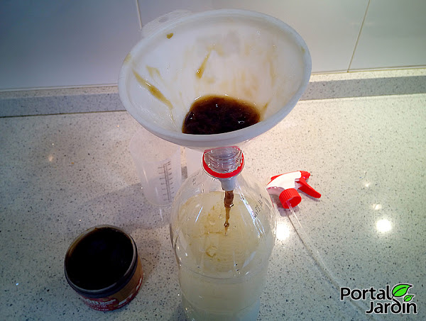 - Otros: 1 envase con pulverizador (en este caso una botella de 2L de refresco con el pulverizador de otro envase), embudo, cuchara, etc.