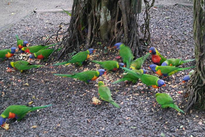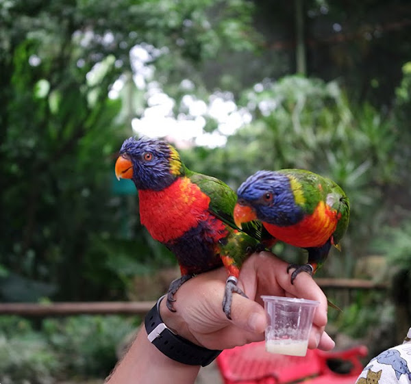 Seguimos la visita y llegamos a los loritos multicolores provenientes de Australia, también se les puede dar de comer y les encanta venir y posarse sobre tu hombro,