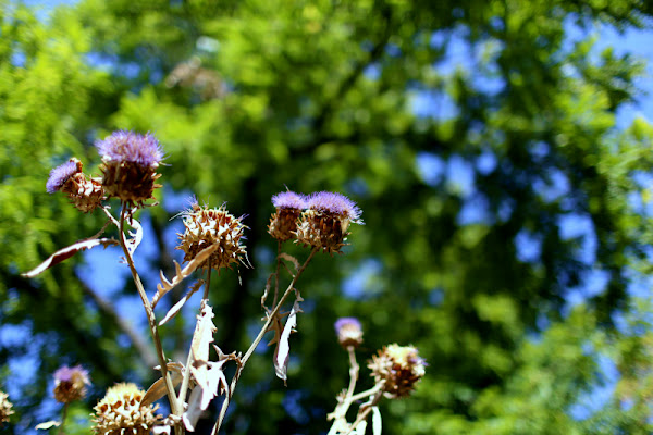 Espectaculares las flores de la alcachofa (arriba) y de los cardos (abajo)