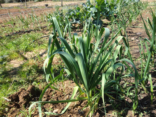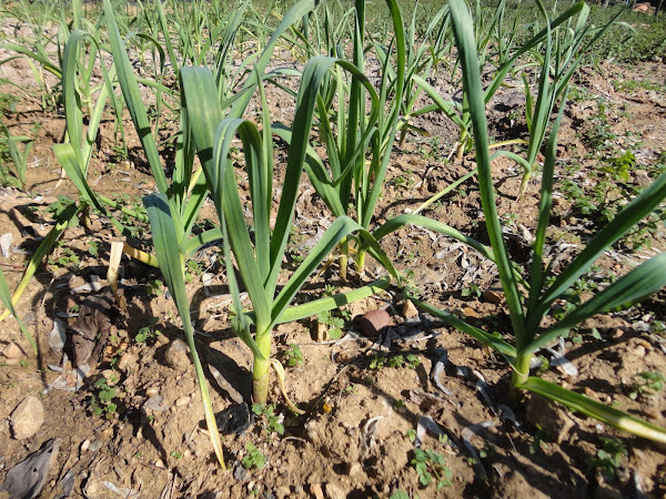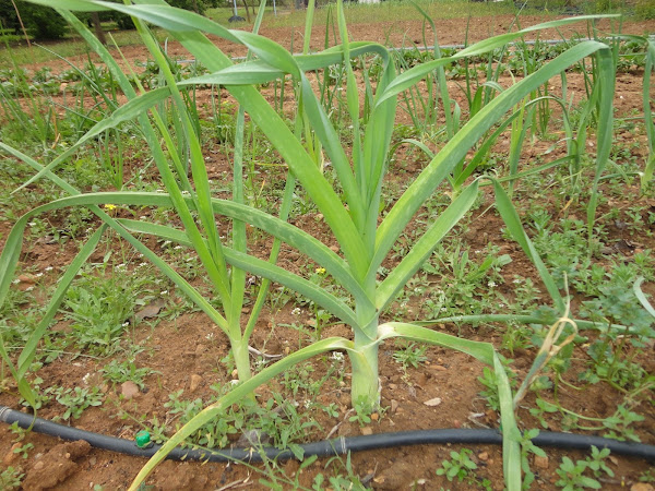 Los plantones de puerros fueron plantados a principios de otoño. En primavera ya van estando creciditos y comenzamos a aporcarlos para que los tallos se blanqueen.