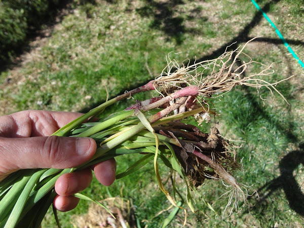 Durante los meses de otoño-invierno se han desarrollado muy poco. A finales de invierno es cuando han comenzado a engordar. En los primeros días de primavera, hemos cosechado las primeras cebolletas para acompañar las ensaladas.