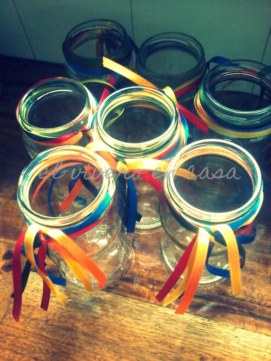 Dando el ejemplo: reutilizando frascos de mermelada como floreros!