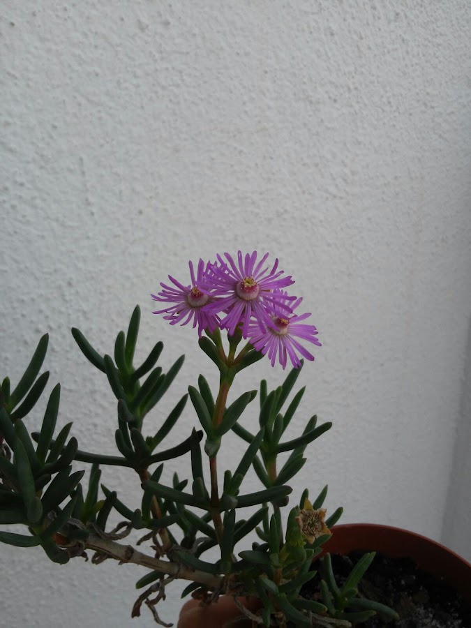 Esta es una de mis plantas suculentas favoritas. Resiste muy bien el pleno sol y la sequía; y además da unas flores preciosas!
