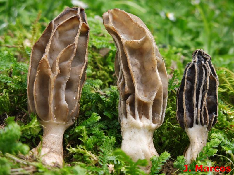 Especie saprosimbiótica que fructifica durante la primavera asociada a bosques de ribera con alisos (Alnus glutinosa) y fresnos (Fraxinus spp.) generalmente en suelos de naturaleza básica de la región eurosiberiana de la Península y en Andalucía. Se caracteriza por su mitra de gran tamaño generalmente piramidal, rara vez subglobosa. Las costillas son blanquecinas que se manchan rápidamente de rojizo en situaciones de estrés hídrico, de manipulación o con la edad. Los alveolos son poligonales y se encuentran alineados verticalmente sin presencia de costillas secundarias intrínsecas. El himenio varía de grisáceo (no negruzco) a pardo ocráceo con la edad. El pie es bastante largo siendo generalmente de la misma longitud de la mitra o incluso superior. Generalmente no presenta pseudovalécula excepto en algunos ecotipos. Olor poco distintivo.Sección Rufobrunnea
