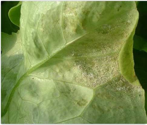 En ambientes húmedos las hojas más viejas cambian a un color amarillo cubriendose de un moho gris y seguidamente está preparado para generar esporas.Si la humedad aumenta las plantas quedan cubiertas por un micelio blanco; pero si