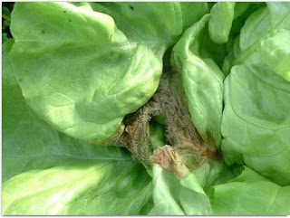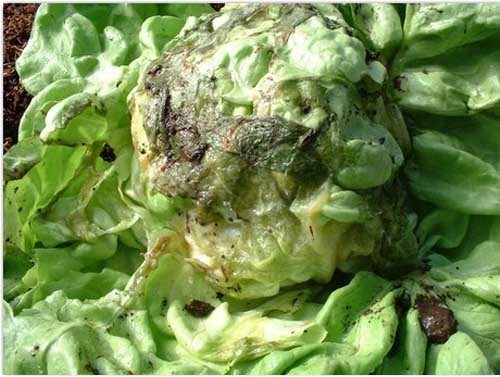 Y aquí comienza el "ser o no ser" de esta ya que el liquido elemento(agua) se puede convertir en problema si las transplantamos muy espesas ,es decir, nuestro marco de plantación en el momento de la cosecha parece un manto verde.Es entonces cuando legiones de hongos oportunistas colonizan nuestra plantación lechugina.Entre todos estos hongos nos encontramos a los incombustibles y omnipresentes Bremia lactucae(micelio velloso), Esclerotinia(Sclerotinia sclerotinium) y la Botritis o moho gris(Botritis cinerea).