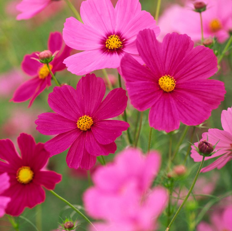 El cosmos de jardín es una de las plantas con flores más bonitas que podrías plantar. Es una perenne que crece hasta 5 pies de alto a pleno sol y en color blanco, rosa y carmesí.