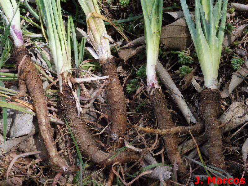 Las raíces tiernas, los bulbos y los bulbilos se pueden recolectar generalmente de finales de primavera a bien entrado el verano, aunque no se recomienda su recolección ya que no es sostenible. Se deben consumir con moderación y bien cocidas porque algunas especies tienen elevadas concentraciones de oxalatos. Se comen generalmente cocidas en sopas, en potajes o incluso encurtidas. También se pueden secar y moler hasta obtener una especie de harina que se usa para condimentar platos o para hacer infusiones.Ajo puerro (Allium ampeloprasum)