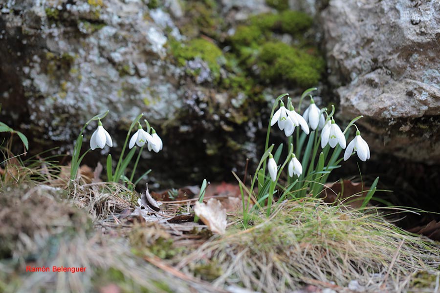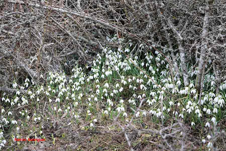 * Galanthus; nombre genérico que deriva de las palabras griegas: gala = "leche" y anthos = "flor", que se refiere al color blanco de sus flores.