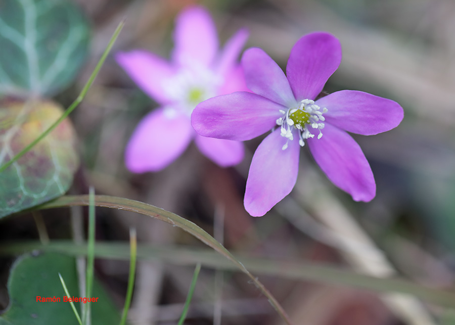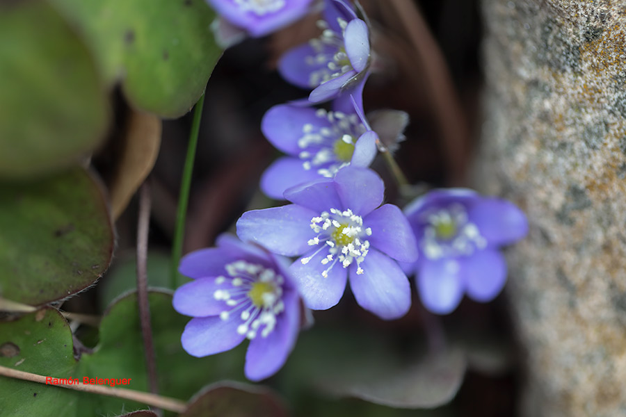 * Hepatica: Del griego hepatiké = relativo al hígado. El nombre de hepática proviene de la semejanza de la forma de las hojas con el hígado. El envés, además, es de un color similar al de ese órgano. Por ello, en el tiempo en el que estaba vigente la teoría de las signaturas se creía que era una planta útil para tratar los males del hígado. Hoy se sabe que carece de cualquier propiedad para ese uso, y la planta fresca es tóxica por su contenido en protoaneminina.