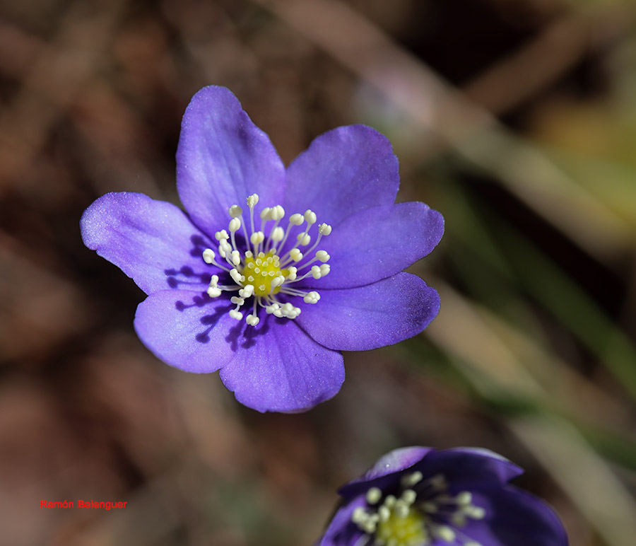 Flor: Regular (actinomorfa), 1525 mm (0,61 pulg.) transversalmente. Perianto de color azul a violeta azulado o púrpura, raramente blanco, formado por seis o siete sépalos, que son pilosos en la base en la superficie externa. La flor está abrazada por brácteas similares a sépalos, que realmente son hojas vegetativas modificadas. Numerosos carpelos y estambres.