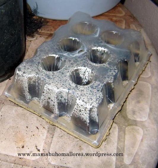 y ya tenemos nuestros planteles preparados desde hace unas semanas, y por supuesto con productos reutilizados, en cajas de huevos, vasos de yogur y pequeñas macetas de otros años.