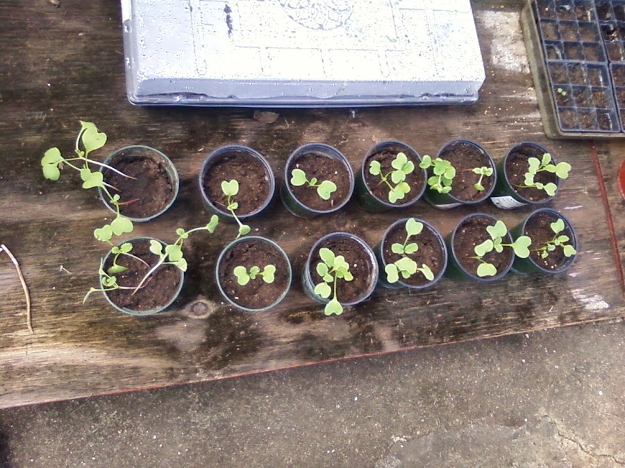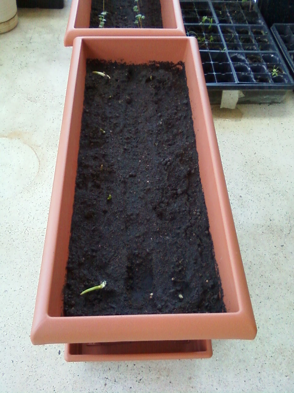Los Rábanos van bien. Llevan como una semana de diferencia cada jardinera.