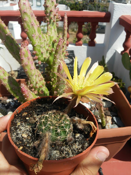 Esta es mi otra lobivia arachnacantha. Como veis las flores son distintas a las otras dos que tengo, al parecer depende del polen de la planta madre el hecho de que la flor sea de una forma u otra.