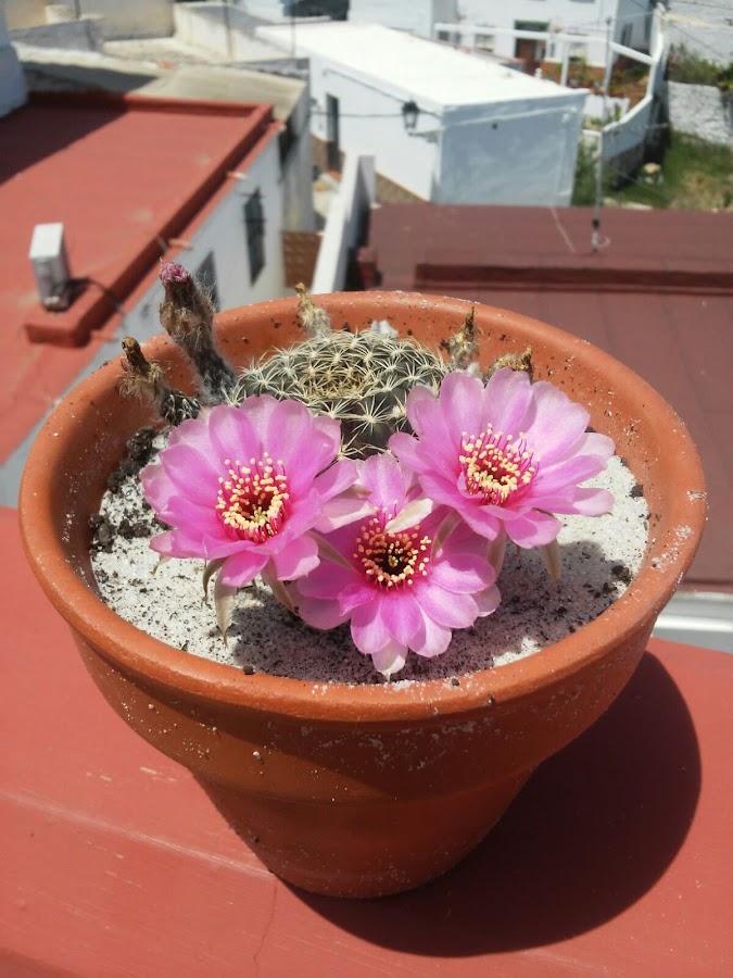 Esta es mi otra lobivia arachnacantha. Como veis las flores son distintas a las otras dos que tengo, al parecer depende del polen de la planta madre el hecho de que la flor sea de una forma u otra.