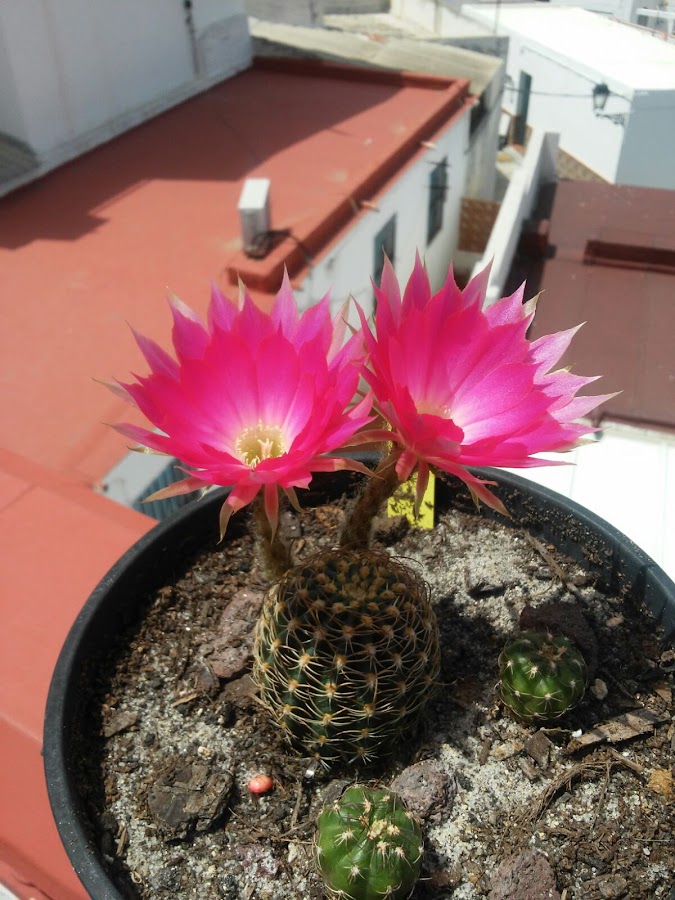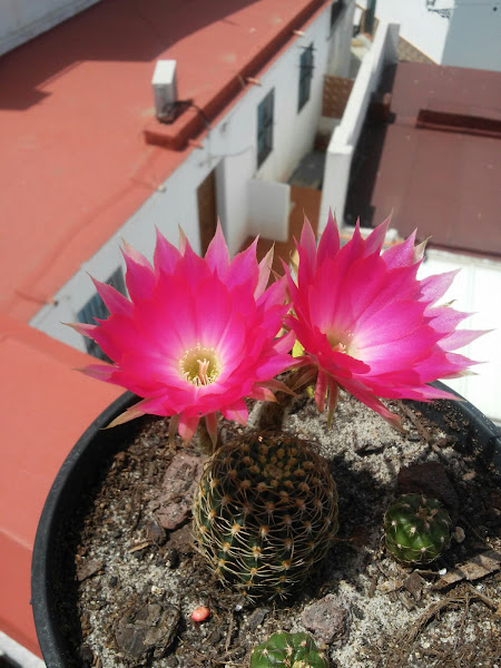Esta es mi otra lobivia arachnacantha. Como veis las flores son distintas a las otras dos que tengo, al parecer depende del polen de la planta madre el hecho de que la flor sea de una forma u otra.
