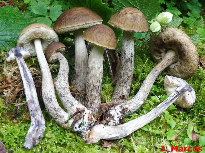 Leccinum pseudoscabrum. Crédito: Javier Marcos Otras confusiones menos habituales son con especies no comestibles o sin valor culinario como Boletopsis grisea, que presenta los poros que no se pueden separar del sombrero y la carne amarga, que fructifica bajo pinos; Lammaoa fragrans (= Boletus fragrans), que presenta la cutícula aterciopelada pardo rojiza, los poros amarillentos que azulean al tacto, la carne amarillenta que azulea ligeramente al corte, que fructifica bajo fagáceas en suelos ácidos; Porpyrellus porphyrosporus, con la cutícula marrón olivácea, los poros marrones, el pie concoloro que fructifica en zonas húmedas bajo planifolios o coníferas y Tylopilus felleus, que se caracteriza por los poros blanquecinos rosáceos, la carne blanquecina rosácea muy amarga, que fructifica bajo coníferas y planifolios.