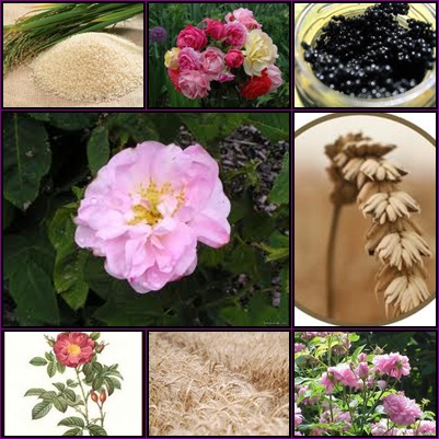 Rosa damascena, centaurea,