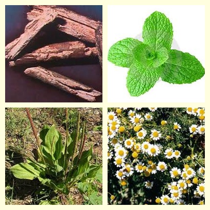 Tisana antigastritis. Se mezclan flores de manzanilla, hojas de menta, corteza de condurango y llantén en forma de infusión, para tratar afecciones de reflujo gastroesofágico, gastritis, úlceras gastroduodenales, espasmos y gases.